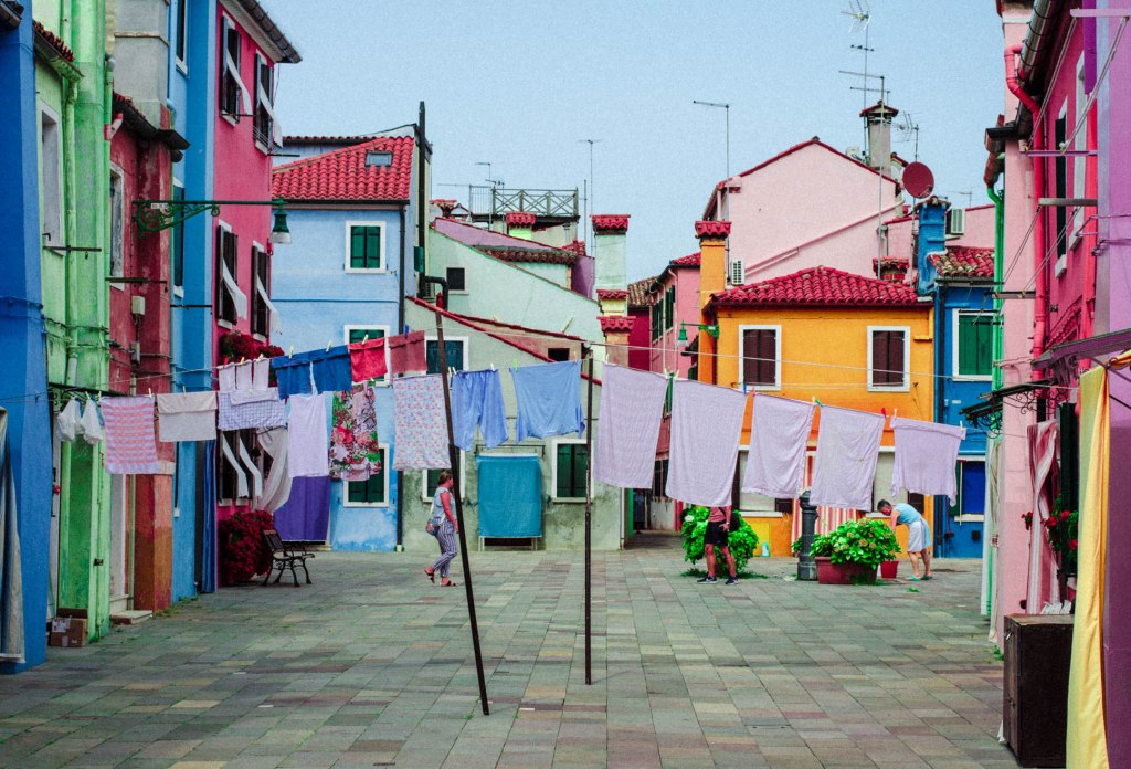 Inutile dire che ho passato ore a scattare foto tra i suoi vicoli. Le strade principali, quelle che costeggiano i canali, sono costellate di case colorate e sembra di stare dentro un arcobaleno. Il mio consiglio però è di girare e scoprire la vera Burano quella della signore che lavorano il merletto e i bambini che giocano a pallone.