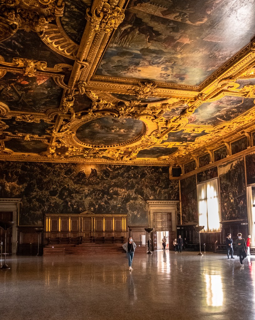 La stanza che più mi ha colpito è Sala del Maggior Consiglio. Un tempo era la sede della massima magistratura veneziana. L’avevo vista tante volte in foto dal vivo ha tutto un altro fascino.