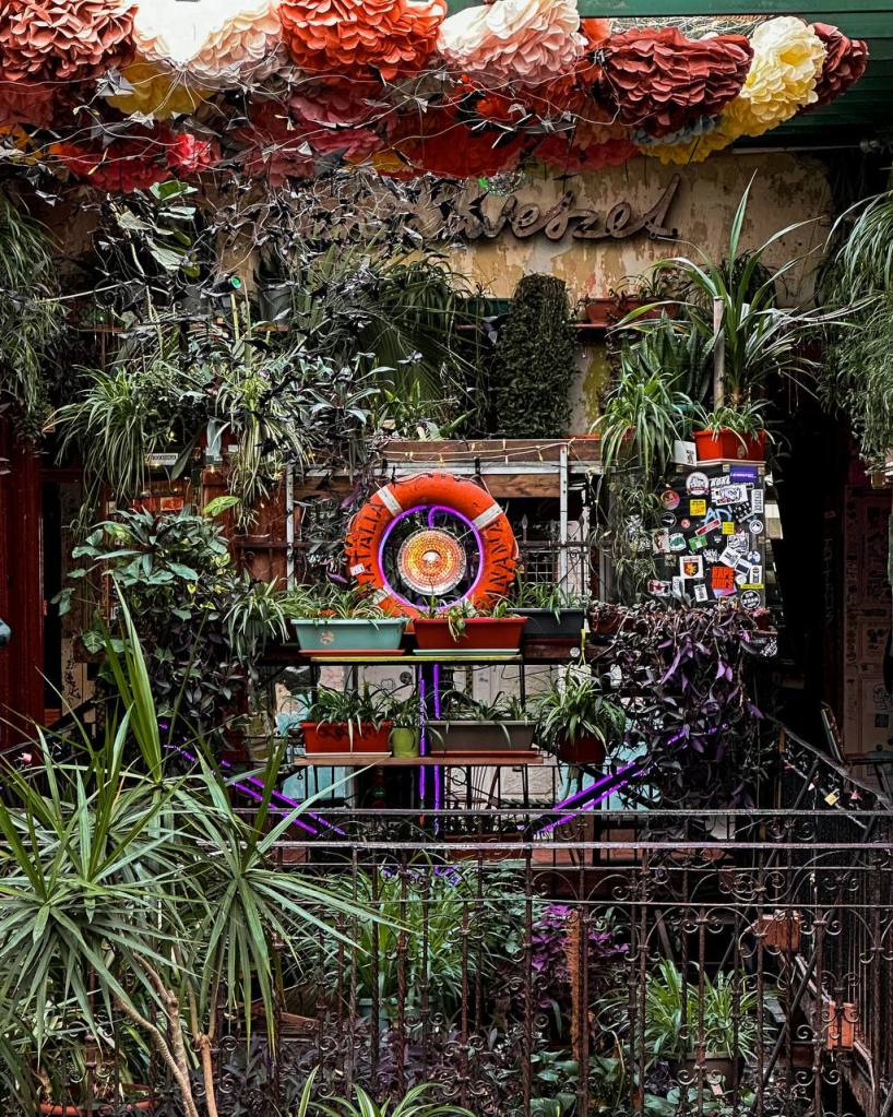 Questo è un enorme locale a due piani con tantissime stanze che all’interno hanno oggetti che centra poco l’uno con l’altro creando un effetto ottico che non può non colpire. Tutte le parti sono coperte da parole o scritte lasciate da chi è passato di lì, quadri, piante, termosifoni colorati, sedie di tutti i tipi e ovviamente un sacco di banconi dove prendere qualcosa da bere. La mattina, nei weekend, c’è anche un mercatino di vestiti. A molti puó piacere a tanti altri no. Personalmente trovo bellissima sia l’idea a che la realizzazione. E’ uno di quei posti strani e un pò matti che amo vedere quando sono in viaggio e spero di vederne tanti altri in giro per il mondo.