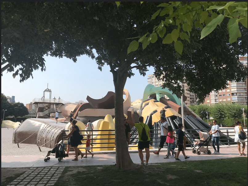 Immaginatevi accanto a una statua gigante di Gulliver, dove gli scalini, le rampe e i tunnel conducono a diverse avventure per i più piccoli. Questo spazio verde è perfetto per una giornata in famiglia o semplicemente per rilassarsi sotto il sole di Valencia.